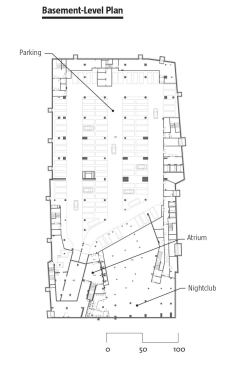 The trade and entertainment center includes shopping, of course, but also restaurants, a children’s area, a climbing wall, and a nightclub. “We really wanted to maximize the interior possibilities since it’s so cold for most of the year,” van Egeraat says. “We really pushed as many square meters into the building as we could.”