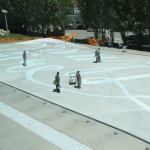 Visitors to the main piazza outside the Zaha Hadid–designed National Museum of XXI Century Arts (MAXXI) in Rome this summer will notice that the ground has been painted with swirling designs. It is not until they get to the upper level galleries in the museum, however, that they gain enough perspective to see that the swirls are not random, but spell out “unire” and “unite” in sprawling script.