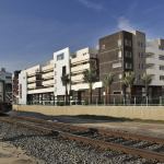 While the 5.2-acre site was chosen for its accessibility to highway and rail transit, apartment interiors shy away from it. Units, ranging from lofts to two-bedroom, are focused inward on themed courtyards oriented away from the neighborhood, freeways, and rail line. Underground and ground-level parking for 600 cars—two from each unit—acknowledges that not all residents will rely solely on public transportation.