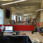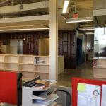 This February, most of our full-time staff moved into two floors of the renovated former Art Academy building adjacent to the art museum (we now call it the Longworth Wing). We are all together for the first time in the institution’s history. The design, by local firm Emersion Design, makes the most of the fact that we had to gut the whole 1887 building. The floors are open and filled with light from operable windows. The core consists mainly of conference rooms, either open or glassed-in, so-called “phone booths” or huddle rooms, and a few utilities.