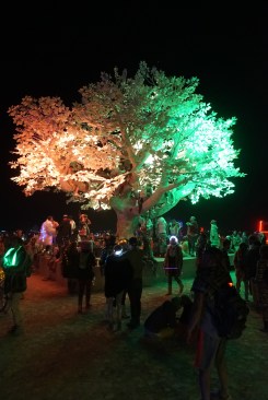 For the Burning Man installation, the team embedded more than 100,000 LEDs in a canopy of 25,000 leaves to create “a canvas of light.” Production and mapping was done by Alexander Green, artist and CEO of Symmetry Labs. The open-source Animation software was developed by artist Mark Slee, and co-creator Patrick Deegan oversaw the sensors and technical coordination issues.