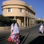 Eritrean women in traditional dress pass an apartment building, formerly the Palazzo Bahobesci, built in 1936 and recently renovated. Asmara has such a wealth of modernist buildings from the 1930s and after that locals pay them no special attention.