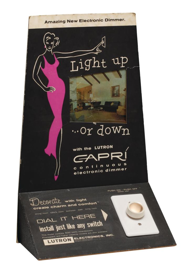 Facilitator of mood lighting, lengthener of bulbs’ lives, Lutron ElectronicsCaprí dimmer was a revelation for homeowners when it debuted in 1964. Its inventor, Lutron founder Joel Spira, recently donated the Caprí and other control systems and materials from the company’s 50-year history to the Smithsonian’s National Museum of American History, where they will join the Electricity Collection. But these artifacts of lighting history will remain in the dark for now: The museum has no immediate plans to put any part of the Lutron materials on display.