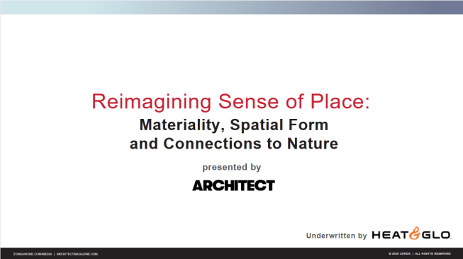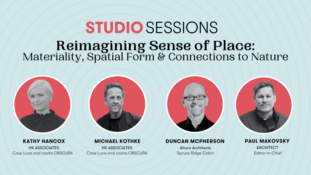 In this new ARCHITECT Studio Session, Reimagining Sense of Place: Materiality, Spatial Form, and Connections to Nature, three 2024 Residential Architecture Design Awards (RADA) winners share projects that highlight how a strong sense of place is shaped by material choices, architectural form, and the relationship between indoor and outdoor spaces.
