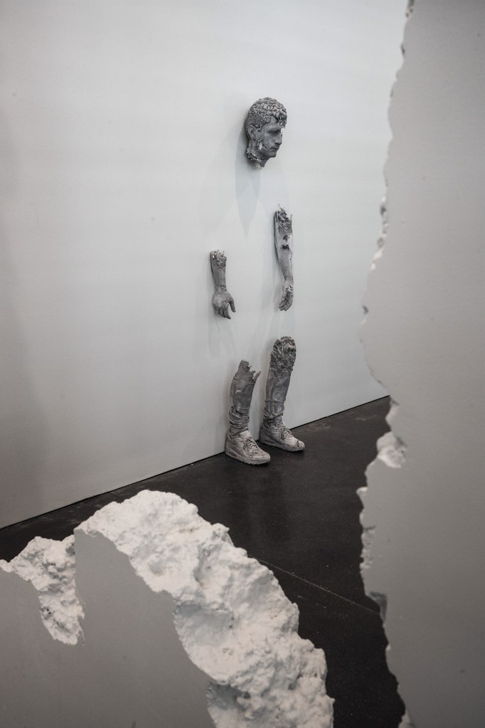 People have long been creating, destroying, and re-purposing the physical constructs that make up architecture—often simply as a matter of course. To represent this, Arsham designed a series of large-scale, faux-concrete walls featuring voids that look as if they’ve been blown open with explosives, while morphing to the silhouette of a human with an assertive stance (widened shoulders, hands curled up into fists). The installation is imbued with Arsham’s aesthetic—stark white materials whose playful or unsettling undertones juxtapose organic objects—while conveying optimism. The gradual shifting in the voids’ form shows progress being made in how mankind manipulates its surroundings.