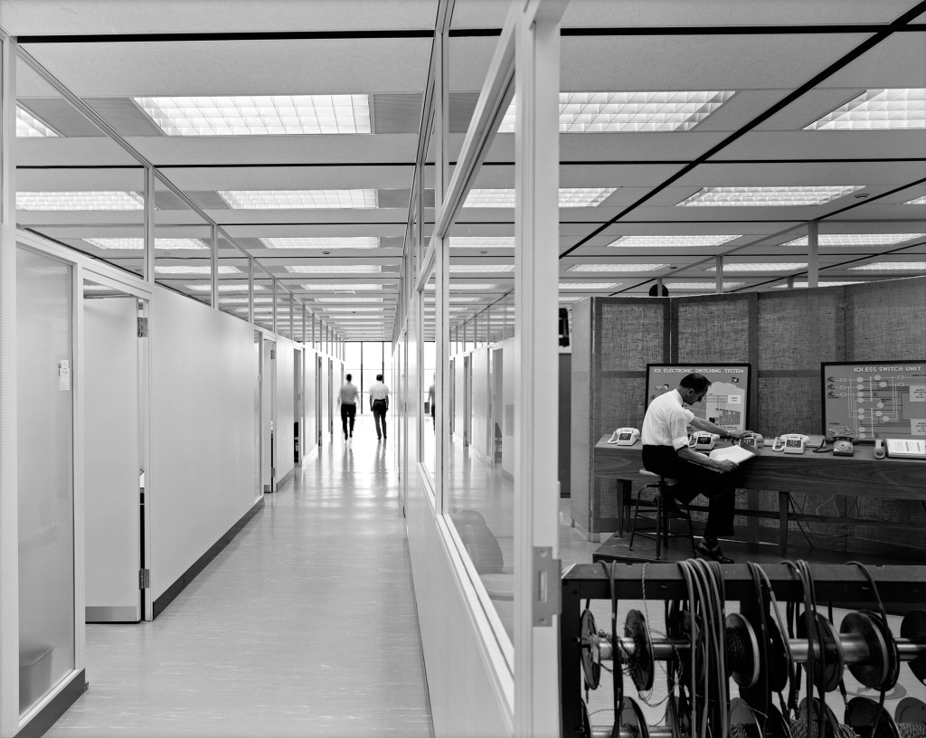 Bell Labs was, in fact, designed for maximum flexibility. The labs and offices that are hidden behind sheets of metal, painted white, on each tier, could be reconfigured as the nature of the work demanded. The application for the building’s designation as a National Historic Place, granted last year, discusses this aspect in detail: “Alterations to interior workspaces were routinely made … to accommodate changing project teams and their needs. Indeed, the building was designed to foster such changes.” Gorlin has used the building’s protean quality when making a case to the National Park Service (overseer of Historic Places) to swap out the opaque white metal lab walls for glass, a change that’s essential to turning the old labs into leasable offices.