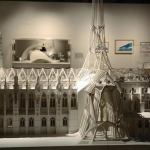 Photographs in the exhibit catalog show that Calatrava’s railway stations, museums, pavilions, stadiums, and urban towers are all typically monumental in scale and located strategically on sites in or near cities, or, in the case of his bridges, spanning rivers in urban, suburban, and pastoral landscapes. But the exhibit itself does not illustrate context with photographs. Rather, visually and physically dynamic models of Calatrava’s built and unbuilt projects fill the galleries. None of the exquisite models, which can be illuminated and put into motion when visitors activate switches, were made at Calatrava’s Zurich workshop explicitly for the exhibition. Clients lent them.