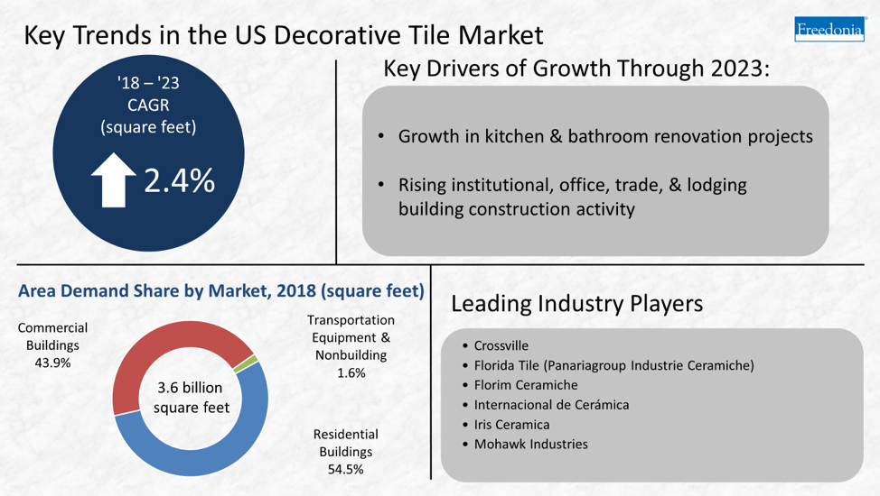 The full study, Decorative Tile, is available for $5,300 from The Freedonia Group.