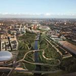 Did you realize that that was the world’s largest Damien Hirst that dancers were dancing on during the Olympic Games closing ceremony? For that matter, did you ever notice the Zaha Hadid architecture curving around the divers and swimmers at the Aquatic Center? Do you remember that the Olymmpic Park’s site plan, designed by Foreign Office Architects, was to be a model of landscape urbanism? Somewhere deep inside the Olympics there was art and design, but you would have had a hard time finding it on television.