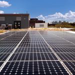 A 53-kW PV system of two flat roof arrays and one rail-mounted array covers 46% of the standing-seam metal roof.