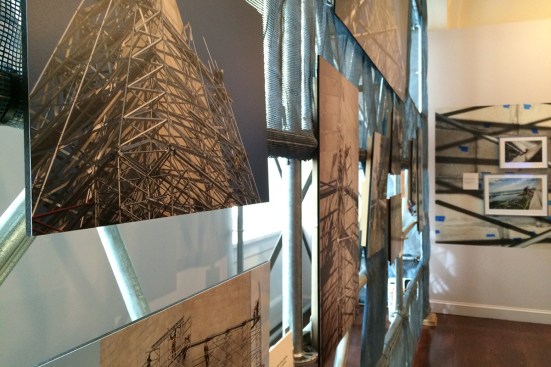 This installation is not your typical photography gallery show. The museum plastered several of the gallery walls with giant photos and hung additional framed pieces on top, and elsewhere wrapped a panorama around an angled wall. But the star of the show, installation-wise, is a reconstruction of a piece of Monument scaffolding and scrim by Universal Builders Supply, the company that installed the scaffolding both times. At the museum, visitors can get up close to something only known from a distance. Coupled with the news of Graves’ death last week, the installation of the Graves-inspired scrim is a little prescient.