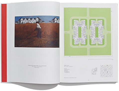 Featuring more than 200 drawings across 272 pages, Atlas of Another America by Keith Krumwiede (Park Books, 2017) outlines a plan for Freedomland, “a 21st-century settlement scheme for the American nation.” In his detailed work of fiction, the author explores the future of the American single-family house amidst “the remains of the suburban metropolis,” and includes drawings of the settlement’s grid and 128 clusters of duplicated house plans he calls “neighborhood farm estates.” Platz der Pope (above), for example, includes 20 houses with a combined total of 72,820 square feet.