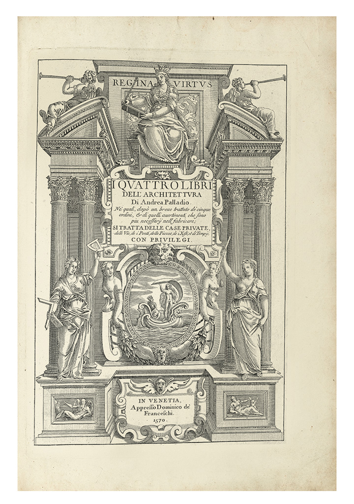 A counterfeit first edition of Andrea Palladio’s I quattro libri dell’ architettura. The British consul in mid-18th century Venice was a collector named Joseph Smith, who commissioned a series of facsimiles of rare books in his collection. Palladio published the original in Venice in 1570; Smith published his version sometime after 1771. Estimate: $2,500 – 3,500