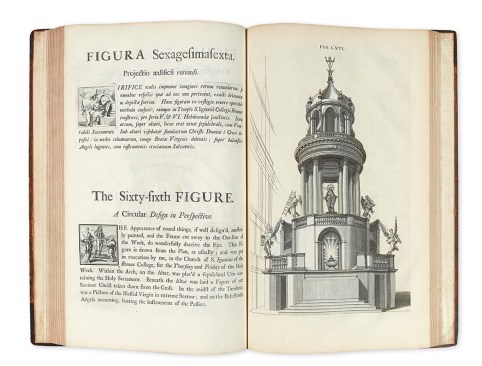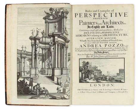 The first English-language translation of Andrea Pozzo’s classic manual of 1693, Perspectiva pictorum et architectorum, or Rules and Examples of Perspective Proper for Painters and Architects. Pozzo was a Jesuit priest and the Baroque master of trompe l’oeil architectural frescoes. Estimate: $1,000 – 1,500