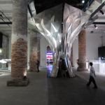 The Biennale uses two main locations, the Arsenale, Venice’s medieval shipyards, and the Giardini, public gardens where dozens of pavilions sponsored by different countries put on the national displays. As I wandered through the Arsenale, which is the most personal expression of the director, I found most of the content extremely pedagogical. The exhibition begins with a stone well—a symbol of the Venetian struggle to provide a common water supply for each island neighborhood—and moves through a multi-image booth provided by Sir Norman Foster, Hon. FAIA, a kaleidoscope of well-known images flashing on the walls and a moving mosaic of keywords on the floor, a presentation that kind of brainwashes visitors with a history of architecture.