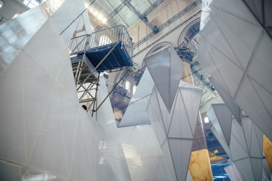 The latest summer installation at the National Building Museum tasks your imagination in a way that those of other years did not. Bjarke Ingel Group’s maze in 2014 and Snarkitecture’s ball pit in 2015 were both elegant interpretations of games that remained recognizable. New York firm James Corner Field Operations designed this year’s installation, “Icebergs,” which opens on Saturday and consists of a “sea” established with blue mesh and polycarbonate paneled structures standing in as icebergs.