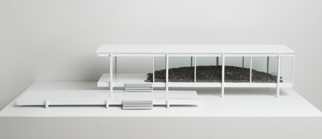 The Museum of Contemporary Art Chicago is complementing the biennial with The Shape of the Future, curated by Nina Wexelblatt. Her assemblage of works from the MCA’s collection—by Yto Barrada, Günther Förg, Buckminster Fuller, Bodys Isek Kingelez, Richard Misrach, Jack Pierson, and others—offers a critique of Modern architecture’s utopian, universalist pretensions. A case in point: artist Mary Brogger’s 2000 sculpture Earthwork (above), which is a scale model of Ludwig Mies van der Rohe’s Farnsworth House in Plano, Ill., filled with birdseed. On view Oct. 19, 2019, through April 5, 2020.