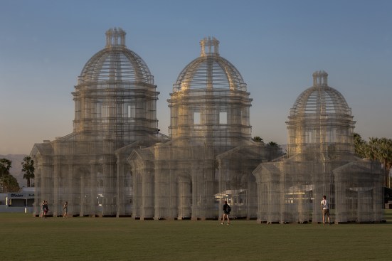 Italian artist Edoardo Tresoldi, known for his transparent wire mesh sculptures, has unveiled his latest site-specific installation at the 2018 Coachella Valley Music and Arts Festival in Indio, Calif. Dubbed “Etherea,” the installation is the product of the artist’s research in the field of music, following his collaborations with international music festivals, including the 2014 Life is Beautiful urban art festival in Las Vegas; the 2015 Roskilde Music and Arts Festival in Denmark; the 2016 Eaux Claires Festival in Eau Claire, Wis.; and the 2017 Derive Festival in Sapri, Italy.