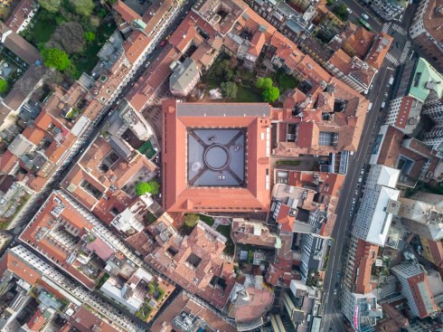 Engineered by Maco Technology, and with lighting design by Artemide, the “presence of the circular ring inside the square of the courtyard’s four walls stands as a symbol of mankind’s continued search for perfection, while also defining a new dimension for the traditional courtyard,” the firm said in a press release.