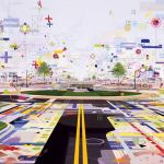 Learning From Las Vegas meets The Matrix on the enormous, colorful surface of Edwards' 75-by-125-inch canvas. The Washington, D.C., artist collages images of suburbia, technology, and the brand economy into a seductive yet disturbing vision of contemporary life. Watch an animation of the making of Immersion on Edwards' website, benjaminedwards.net.