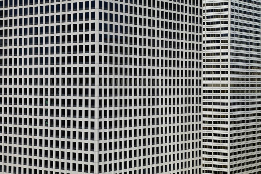 Others use technology to manipulate our environment. Struth’s contemporary and fellow “Düsseldorf School” photographer Andreas Gursky is the most well-known creator of such distorted, warped images that show how strange our world is becoming, while Olivo Barbieri uses shift/tilt to turn the landscapes of Las Vegas and other sites into what look like dolls’ houses we can comprehend at that smaller scale. A more recent generation goes further, Photoshopping fragments of various buildings together, as Filip Dujardin does most effectively in creating piles of buildings that teeter over serene landscapes.