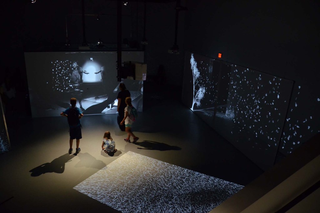Other exhibits tell visitors to touch, dance, or blow, and use various technologies including LCD screens, video projectors, and kinetic cameras, to create a sensory experience.