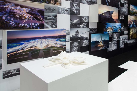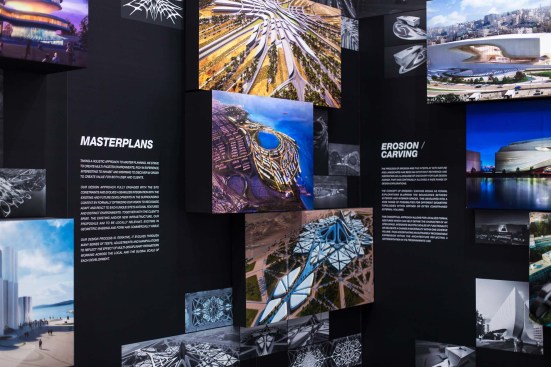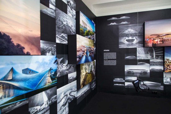 The exhibit is subdivided by concept, and includes outtakes and future plans for towers, masterplans, stadiums, atriums, shells, ribbons, and bubbles that showcase ZHA’s design methodology and the latest trends in architecture and technology.