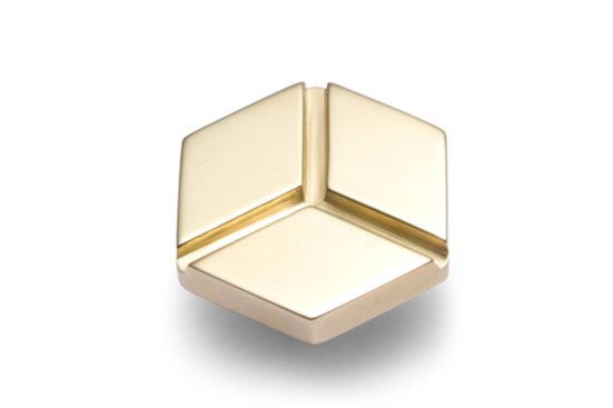 This hexagonal fixture by New York-based hardware company Nanz measures 1.06”, and comes in 28 finishes including polished chrome, dark pewter, and polished brass (shown). nanz.com