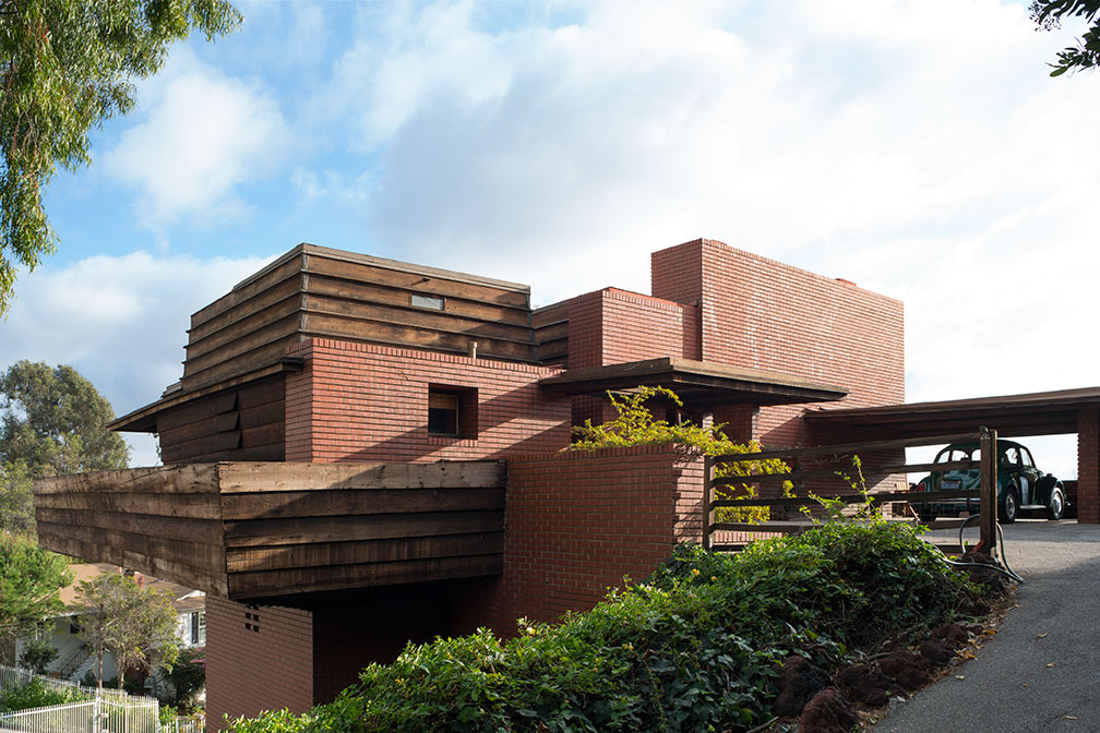 The redwood-and-brick property diverts from Wright’s other Southern California homes which are predominantly made of concrete, such as the Hollyhock House, a stylized “California Romanza” hybrid structure built in 1921 in what is present-day East Hollywood. The Sturges home is Wright’s only Usonian design in the city, which places an emphasis on creating a more affordable, modern home for the American middle class. Wright aimed to integrate the approachable aesthetic, which draws on low roofs, open design, small size, and natural materials, as a way to create a national style that grew from the Prairie style homes. Other sites built in the same fashion by the architect include the Jacobs House, in Madison, Wis., the Rosenbaum House in Florence, Ala., and the Malcolm Willey Home in Minneapolis, Minn.
