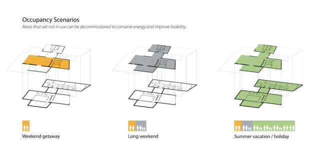Sun, sea, and family gatherings draw 20-plus lucky folks to this striking home overlooking Cape Cod Bay. Those appealing elements also presented the biggest challenges for architect Stephanie Horowitz and designer Ben Uyeda of ZeroEnergy Design. “Extreme fluctuation in occupancy was the starting point for our entire design,” Horowitz explains. “The house serves as a year-round weekend home for the two owners and a summer retreat for their entire family.”