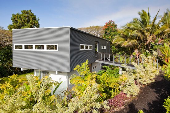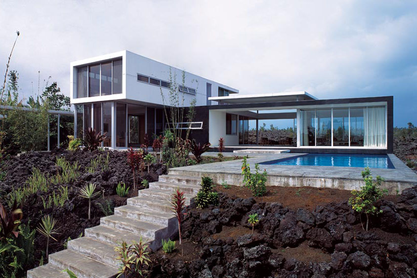 In 2000, California–based Craig Steely Architecture started designing a housing series on the Big Island of Hawaii. Unlike other architects in Hawaii, Steely decided to construct the homes on the harsh, damp, and windward Hilo portion of the Island, rather than the drier, more forgiving Kona side. He even went a step further with the placement: all the homes are built on the hardened lava of a previous eruption from the volcano Kilauea. The series, which is spread over various plots on the the Hilo side of the island, soon became known as the Lava Flow homes.