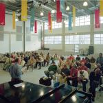 In addition to providing daily Bible classes, Pacific Garden Mission has a tradition of helping its clients earn high school diplomas and offering life skills programs, such as checking account management, basic English, and computer training. To aid the efforts, Tigerman provided five classrooms and a half-dozen small counseling rooms. Large sleeping rooms are located on second-and third-floor wings for men and in separate second-floor rooms for transient women, long-term female residents, and women with children. The architects designed the space-saving bunks in a way that allows them to be paired side by side, with a metal partition separating the occupants.
