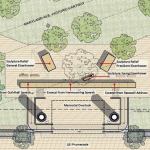 The site plan drawing shows that the memorial spans the blocks b…