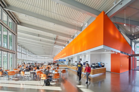 “We have a communicating stair in the dining hall that allows natural light and creates fire separation. It’s important in helping bring people together. In the lab buildings there’s fire-resistive glass adjacent to a chemical storage area. One is all about communication, the other about functionality.”
