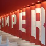 Keeping the structure intact, Ban removed existing windows and walls, replacing them with floor-to-ceiling sliding glass walls that can be opened in the warmer months. Capitalizing on this new transparency, he transformed the store’s single long wall into a billboard—that announces “Camper” in the company’s red-and-white logo and—that doubles as a display case for the shoe collection. By working with changes in perspective, Ban was able to consolidate the branding and display in this single gesture. From Prince Street, the vertical facets converge to make the graphic legible, but from within the store, customers discover the display cases embedded in the wall. “I tried to separate each shoe so it has its own space,” Ban says. Seating comes in the form of Ban’s 10 Unit System benches from Artek, which are made from a composite material composed largely of recycled wood and paper.