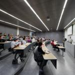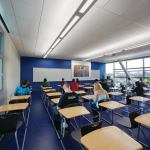 Carels lined the building perimeter with classroom spaces in a single loaded corridor, and created visual and physical connections to nature. Bound by windows on two sides, many of the classrooms have the potential for distraction, but state-of-the-art audiovisual technology and strong accent wall colors help instructors keep students’ focus at the front of the class. To prevent glare, windows were equipped with high-performance low-E glass and each classroom is outfitted with operable interior shades.
