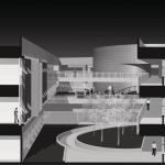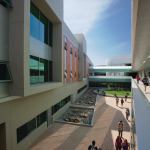 Classrooms, laboratories, a lecture auditorium, faculty offices, multiple study areas, and support spaces fill the three-story facility, and a central interior courtyard opens the MD Building to the environment.