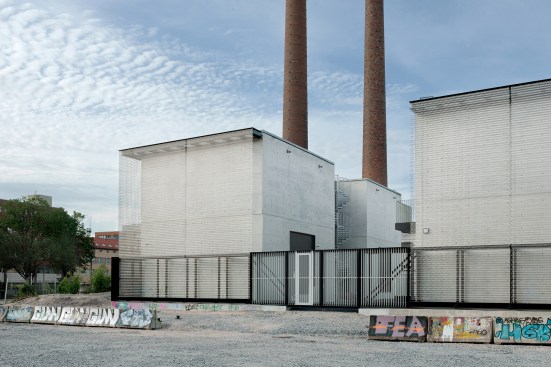 Power-grid infrastructure rarely gets the architectural imagination firing. But Virkkunen & Co Architects, the local firm hired by the city power company to design the substation, has decades of experience with precisely this sort of project, as well as with bringing highly contextual, subtly expressive designs to an otherwise mundane typology. While the substation is a completely new structure, by coincidence it sits between two historic power-generation facilities: The former Suvilahti power plant, which was recently converted into a cultural center, and the Hanasaari plant, a still-functioning coal-fired cogeneration facility from the 1970s.