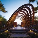 For the past five or so years, the architects have been experimenting with CNC milling, fascinated by the customization that digital fabrication allows. Here, the shop-made pieces allude to the vegetation and culture. The island’s basket-weaving history inspired the entry pavilion, which re-enacts the tradition of presenting guests with a gift. The marine plywood inverted basket was assembled on site from a kit of parts fabricated in Los Angeles.
