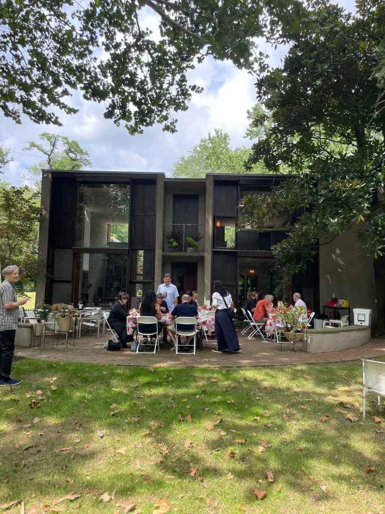 This summer its current owners, Dan Macey and Paul Savidge, hosted a “Kahn and Crabs” feast for our local chapter of Docomomo, the international organization that concerns itself with the preservation of modern monuments, and I was able to wander around and through its fully restored forms.