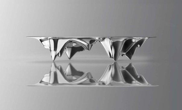 The collection takes cues from the popular 20th century theme of science fiction and the 1960s Space Race aesthetic. Its forms, bringing back Ma’s Shanshui City philosophy—that the ideal city of the future will combine the convenience of the modern city with the ancient Eastern affinity for the natural world—show both natural elements and imagined extra-terrestrial environments in what he pictures to be the natural landscape of Mars. The collection is the first in a series commissioned by Gallery ALL that is focusing on Chinese designers and creating a dialogue between Eastern and Western design practices.