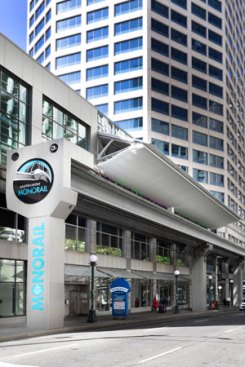 To help understand the evolution of the 60-year-old Seattle Center Monorail from a quaint tourist attraction to a high-impact public transportation link, start by looking up.