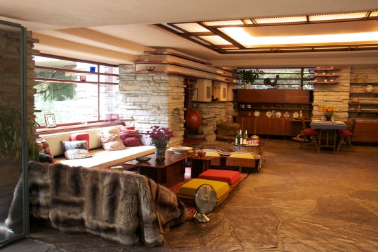 The roots of Fallingwater are, in other words, not just in nature and Wright’s idea of what that concept means, but also in an aesthetic tradition that today we know as the Arts & Crafts movement. Based on the thoughts of John Ruskin and others, the 19th-century movement propounded a weaving out of nature of not only of human forms but also of human communities. Ruskin and his followers saw their work as a recrafting, in the most literal sense of the word, of society; communities would become based on the continual making and remaking of the spaces, objects, and images of everyday use. Out of these beliefs came varied ways of making things, ranging from William Morris’ wallpaper to C.R. Ashbee’s neo-primitive furniture. Just as important, the movement spread through a hybrid of the artist’s atelier and the production factory: the Arts & Crafts community, in which craftspeople and artists collaborated and often lived together. Although the fellowship that Wright established at Taliesin in 1932 (and whose successor, the School of Architecture at Taliesin, I now guide) was a particular and different variant on this model, it was without a doubt inspired by communities such as Ashbee’s Guild and School of Handicraft, which Wright visited several times.