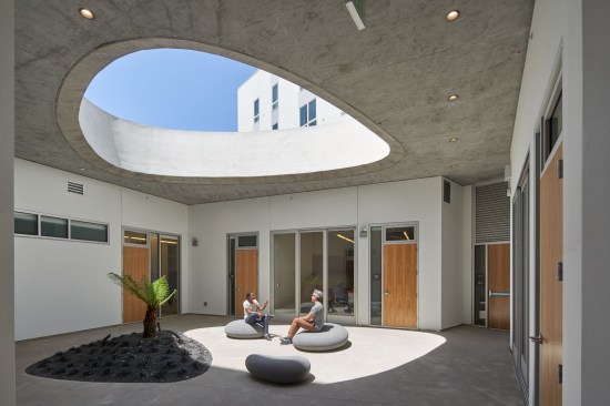 For the second of the project’s three phases, David Baker Architects and Paulett Taggart Architects have created 179 affordable family homes and apartments across two land parcels. Block 10, located at the crest of the community’s central hill, is equipped to serve as the social hub of Hunters View. A community center and day-care facility are located on-site, as well as a fitness room, wellness center, recording studio, and micro-retail space. The administrative offices and resident service centers are located on The Oculus, a belowground courtyard anchored by a large open skylight.