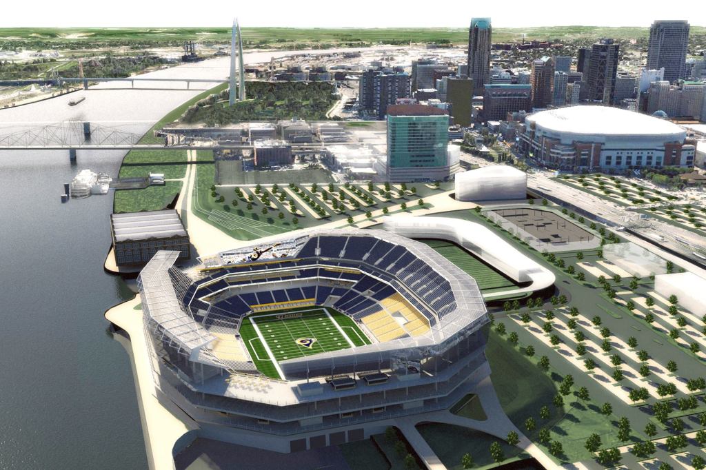Photo of the Day: HOK released new renderings of a St. Louis NFL stadium. [HOK] While the stadium could be the future home of the St. Louis Rams, the team is also considering moving to Los Angeles. Peter King writes, “So St. Louis has an owner with one foot out the door but with a solid plan to keep the team in a beautiful stadium.” [The MMQB]