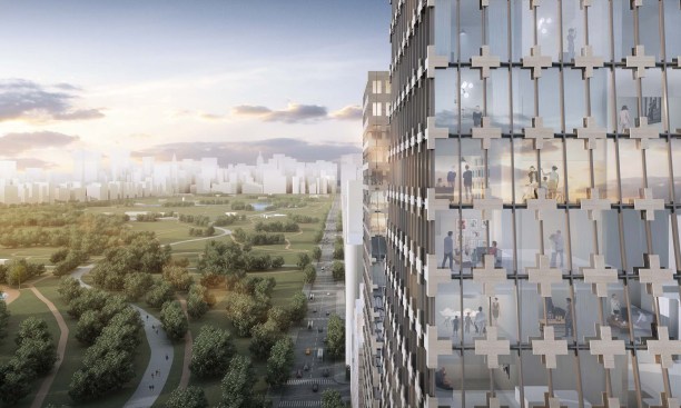 The firm studied the design and geometry of each landmark by creating 3D models of each building, stripping away the details, and reinterpreting proportions and massings to capture the unique characteristics of each structure in a contemporary façade. At the heart of the research is the idea that “designing a landmark means designing for longevity,” Hollwich Kushner said in a release.