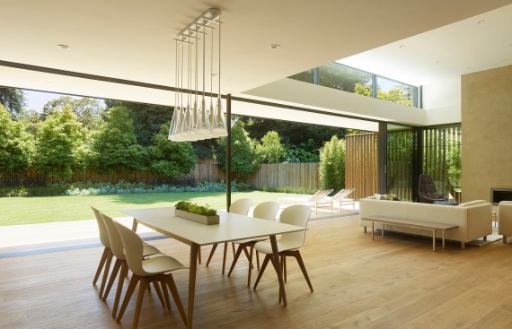 Nothing beats natural light, and to maximize the amount of it in a home’s core living spaces, designers have developed ways to incorporate walls of floor-to-ceiling windows or doors. The feature not only adds light, but also gives homeowners the opportunity to open their homes to the outdoors. Check out the following applications of window walls below.