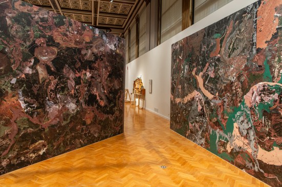 2) Do Ho Suh’s video of Peter and Alison Smithson’s Robin Hood Garden, a Brutalist 1970s social housing complex in East London, being torn down. The pan across the interiors revealed by the deconstruction process in 2017 evokes the lives that unfolded there. The film was shown earlier at the Victoria & Albert Museum and the Venice Biennale, where it was part of a wider display on preservation and destruction—a context that is, unfortunately, completely missing here.