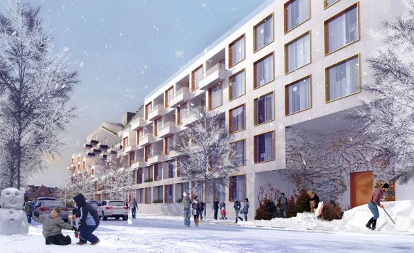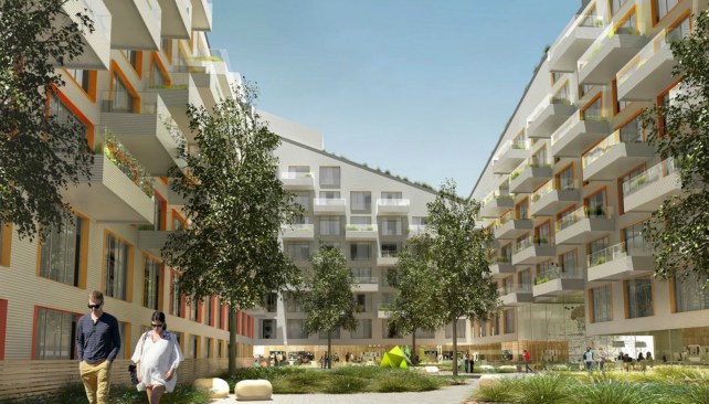 The building’s design is thoughtful, and aims to foster a sense of community among future residents. The heart of the structure is the 19,000 square-foot interior courtyard on the ground floor, which “serves as a visual and physical connector” between the units surrounding it and community common areas.