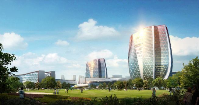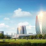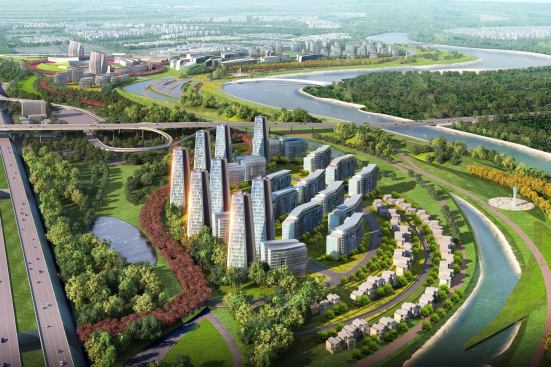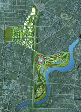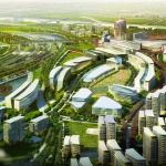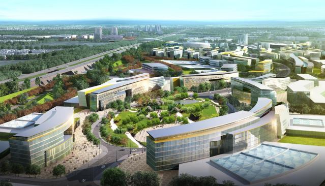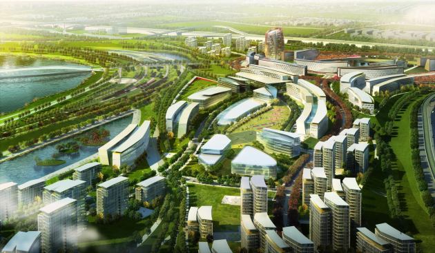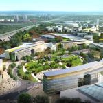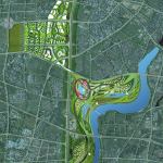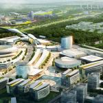 Woods Bagot recently won a competition held by China Southern Airlines (CSA) to design their new global headquarters in Guangzhou, China. Teaming with Hargreaves Associates and Sherwood Engineers, Woods Bagot developed a proposal that focuses on drawing water and landscape through the site to unify the different precincts included in the program. The 41-million-square-foot master plan includes an industrial zone dedicated to CSA’s aviation maintenance, residential areas, a university with adjacent housing, and an executive park overlooking a man-made lake at the heart of the new metropolis. With a project of this scale, it was important both to the designers and the client that the sustainable aspects of the design, such as new freshwater wetlands and restoration zones, become deeply embedded in its identity. “Flying over Beijing, you can read the concentric rings of the city,” says Richard Marshall, joint CEO and director of urban design at Woods Bagot. And in an effort to create a similar readability for Guangzhou, the design team seized on the opportunity to capitalize on the city’s position directly beneath the flight path to Guangzhou airport. “Flying across the site on approach, you’d see the site from the air with a clearly identifiable image,” Marshall says. For a city based around the airline industry, the oft-ignored aerial view is an important consideration.